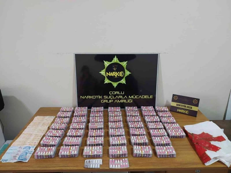Tekirdağ İl Emniyet Müdürlüğü Narkotik Suçlarla Mücadele Şube ekipleri, Çorlu ilçesinde uyuşturucu ve uyarıcı madde ticareti yapan şahıslara yönelik operasyon düzenledi. Operasyonda, 2 bin 562 adet reçeteye tabi sentetik ecza maddesi, uyuşturucu madde ticaretinden elde edildiği değerlendirilen 2 bin 920 TL ele geçirildi.