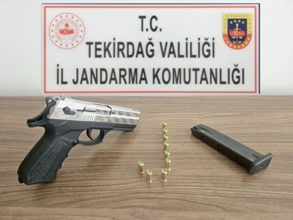 Tekirdağ İl Jandarma Komutanlığınca Kapaklı Pınarça Mahallesi’nde L.K. isimli şahsa yapılan kaba üst aramasında 1 adet kuru sıkı tabanca ele geçirildi. Şahsa 8 bin 322 TL idari para cezası uygulandı.
