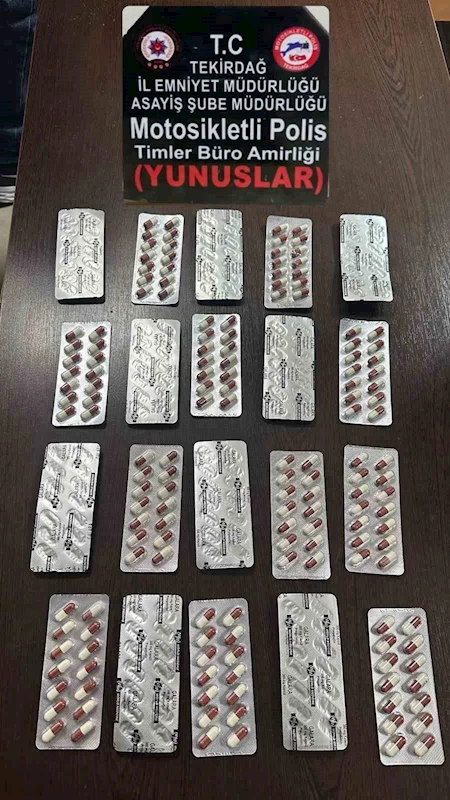 Tekirdağ İl Emniyet Müdürlüğü Asayiş Şube Müdürlüğü Motosikletli Polis Timleri Büro Amirliği ekiplerinin çalışmaları sürüyor. Süleymanpaşa ilçesine bağlı Aydoğdu Mahallesi’nde B.F. isimli şahıstan 20 tablet halinde 280 adet sentetik ecza ele geçirildi. Konu ile ilgili B.F. isimli şahıs, uyuşturucu madde ticareti yapmak suçundan gözaltına alınarak çıkarıldığı adli makamlarca tutuklanarak cezaevine teslim edildi.
