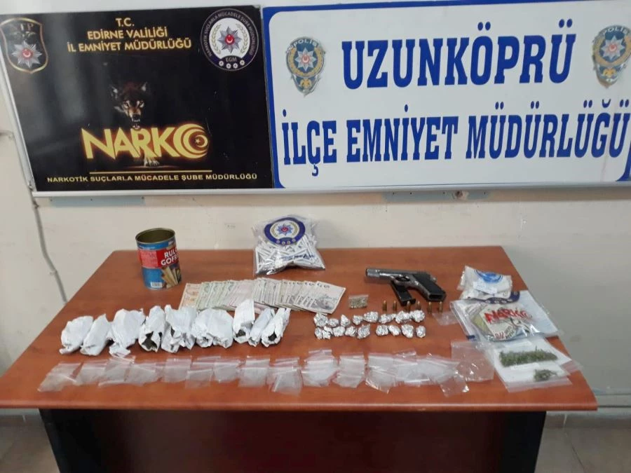 Edirne’nin Uzunköprü ilçesine bağlı İlçe Emniyet Müdürlüğü Norkotik Büro Amirliği ve Edirne Narkotik Şube Müdürlüğü koordinesinde yürütülen ortak çalışmalarda; T.B ve E.K isimli şahısların ikametlerinde, işyerlerinde ve araçlarında yapılan aramalarda 12 paket halinde 107 gram esrar maddesi, 2.8 gram Hint keneviri tohumu, 17 adet satışa hazır 17 gram marihuana maddesi ele geçirildi.