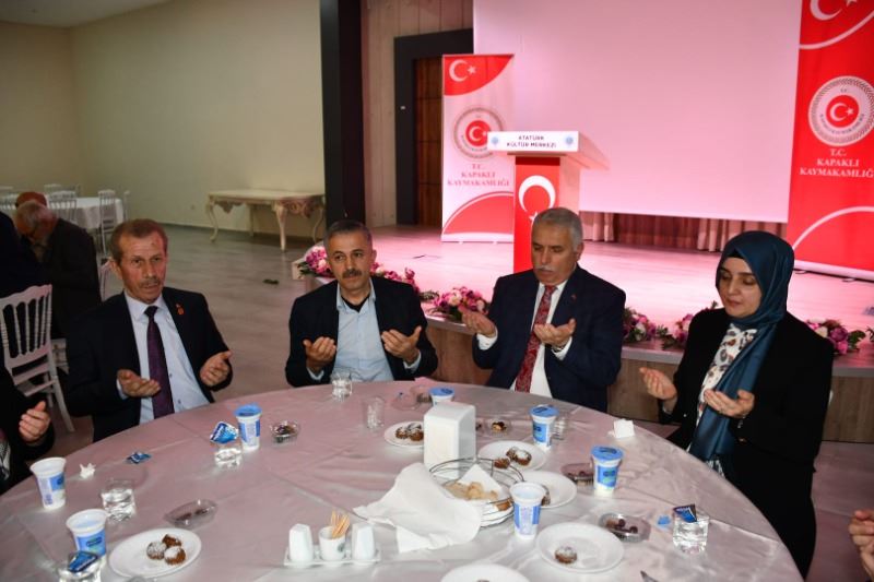 Tekirdağ Kapaklı Atatürk Kültür Merkezi'nde şehit aileleri, gaziler ve gazi ailelerinin katılımıyla iftar programı düzenlendi. Programa Tekirdağ Valisi Aziz Yıldırım ve eşi Güllühan Yıldırım, Kapaklı Kaymakamı Bayram Sağır, Çerkezköy Garnizon Komutanı Tuğg. Osman Akyıldız, İl Jandarma Komutanı J. Alb. Ahmet Çetin, Kapaklı Belediye Başkanı Mustafa Çetin ve Kapaklı Erenler Cemevi Başkanı Kemal Öztürk de katıldı.