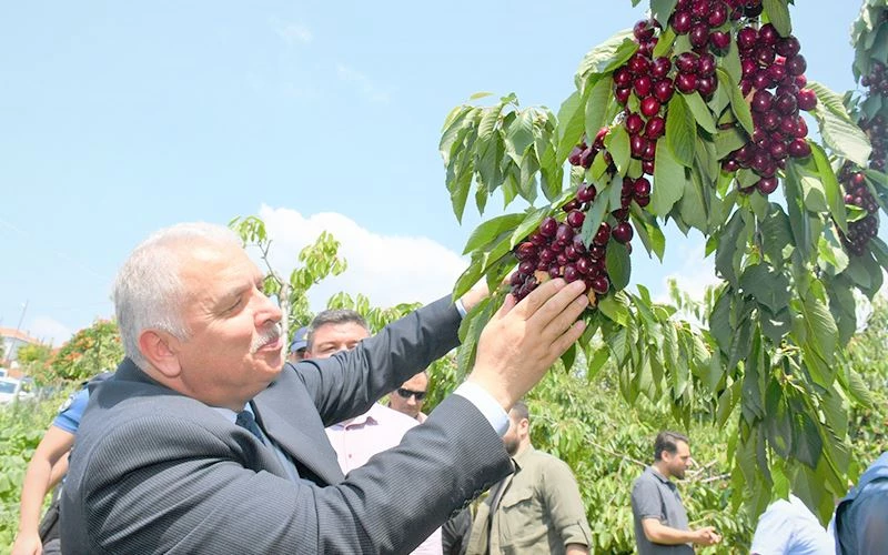 VALİ AZİZ YILDIRIM KİRAZ HASADINA KATILDI