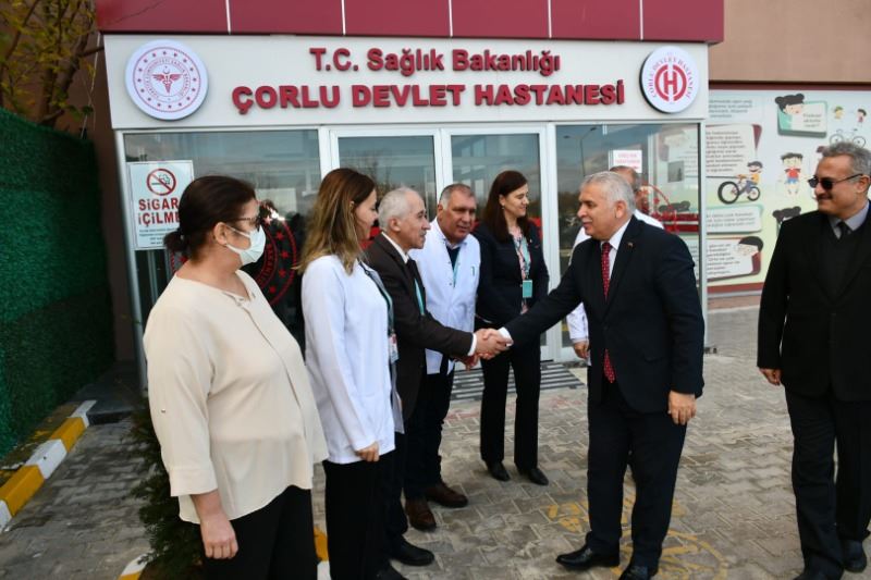 Vali Aziz Yıldırım, Çorlu ziyaretleri sırasında Çorlu Devlet Hastanesi’ni de ziyaret etti. Ziyaretleri sırasında Hastane Başhekimi Doç. Dr. Mustafa Doğan’la görüşen Vali Yıldırım, hastane hakkında bilgi aldı.