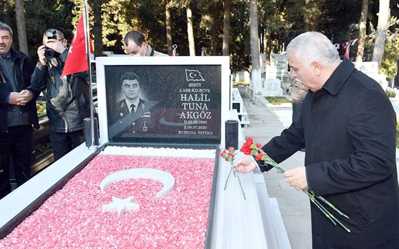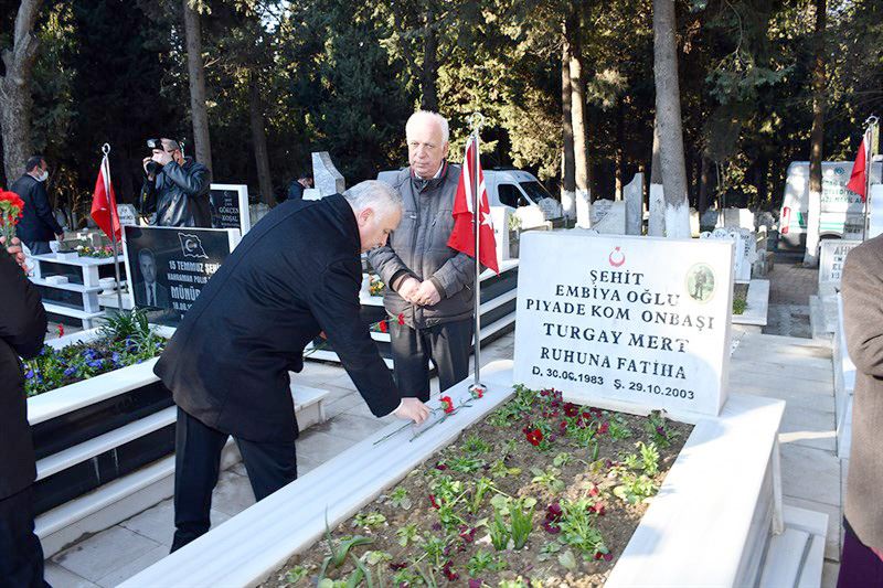 Ziyarette, Kuran-ı Kerim okunup dua edilmesinin ardından Vali Aziz Yıldırım ve protokol üyeleri, şehit aileleri ile birlikte şehit mezarlarına karanfil bıraktı.