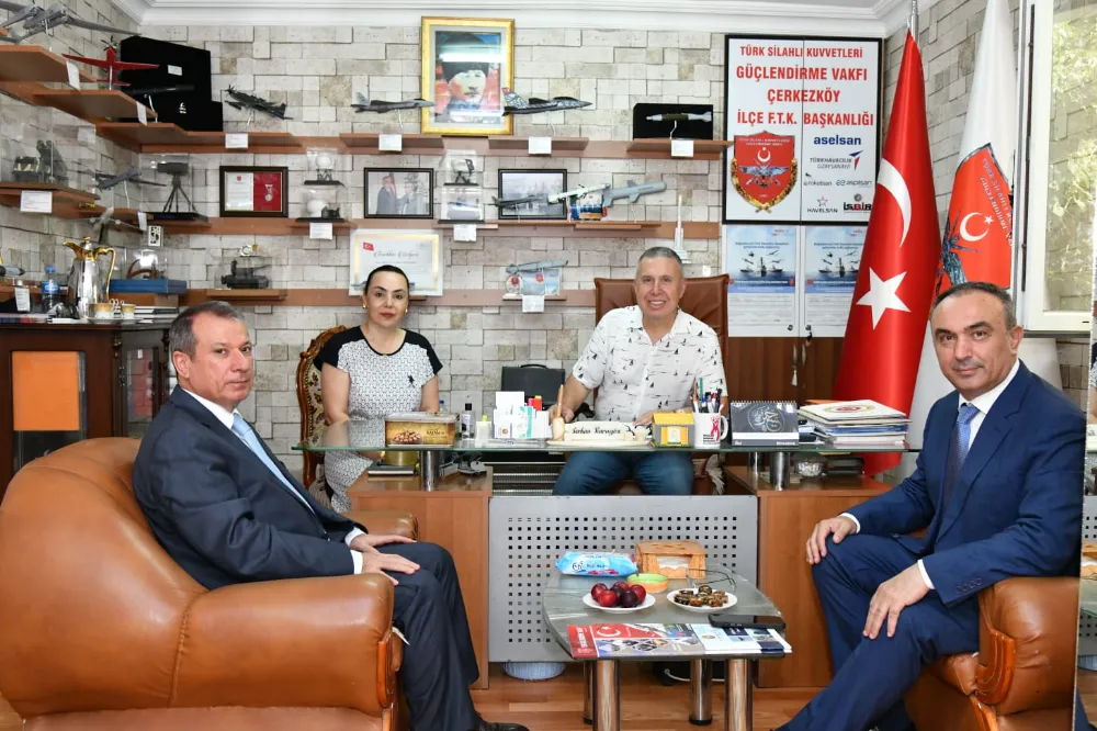 Tekirdağ Valisi Recep Soytürk’ün hayırsever Müjgan-Serkan Karagöz çiftini ziyaretleri sırasında Çerkezköy Kaymakam Vekili Mustafa Gürdal eşlik etti.