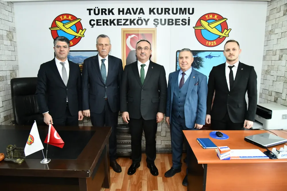 Ziyaret sırasında Vali Soytürk, aynı zamanda Türk Hava Kurumu (THK) Çerkezköy Şube Başkanı olan Serkan Karagöz’den yapılan çalışmalar hakkında bilgi aldı. THK’nın kuruluşunun 100 yılını kutlayarak başarılar diledi.