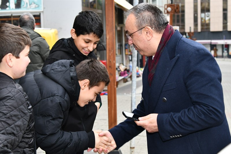 Esnaf ziyareti esnasında Vali Recep Soytürk ile fotoğraf çektirmek isteyen çocuklarla bir süre sohbet eden Vali Soytürk, çocuklar ile hatıra fotoğrafı da çektirdi.