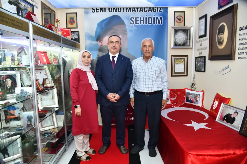 Vali Soytürk, ziyaretin ardından Şehit Jandarma Uzman Onbaşı Dinçer Ersoy’un kişisel eşyalarının bulunduğu odayı da gezdi. Şehidin hatıraları hakkında aileden bilgi aldı.