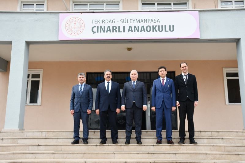 Ücretsiz beslenme desteği verilen Çınarlı Anaokulu'nu ziyaret eden Tekirdağ Valisi Aziz Yıldırım, okulu gezerek İl Milli Eğitim Müdürü Ersan Ulusan'dan bilgi aldı.