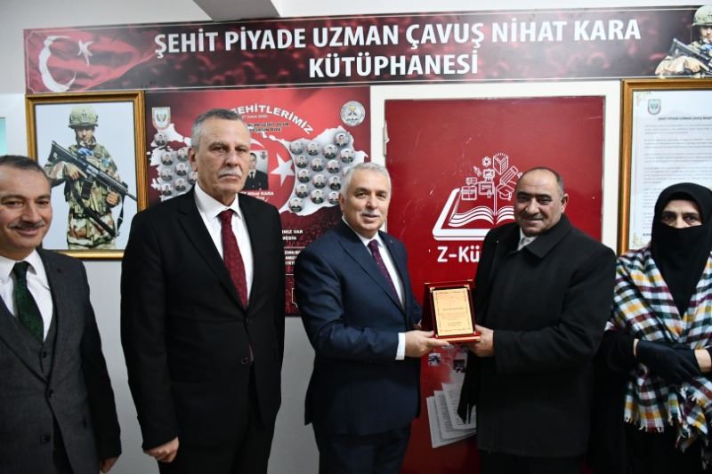 Konuşmaların ardından kurdele kesilerek açılış gerçekleştirildi. Akabinde Vali Yıldırım, Şehidimizin Babası Kemal Kara’ya plaket taktim etti. Ardından Vali Yıldırım ve beraberindekiler kütüphaneyi gezdi. Ardından Vali Yıldırım hayırseverler ve okul aile birliği tarafından yaptırılan spor salonunun açılışını yaptı. Vali Yıldırım, spor salonunun yapılmasında emeği geçenlere teşekkür ederek plaket takdim etti.