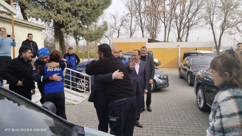Tekirdağ Valisi Aziz Yıldırım, Kahramanmaraş’ın Pazarcık ve Elbistan ilçeleri merkezli yaşanan ve birçok ili etkileyen depremin ardından en kısa sürede hazırlıklarını tamamlayarak afet bölgesine gidip arama kurtarma faaliyetlerinde bulunan, 3 ekip ve 14 personelden oluşan Tekirdağ AFAD İl Müdürlüğü görevlilerini bölgeye dönüşlerinde AFAD Koordinasyon Merkezi’nde karşıladı.