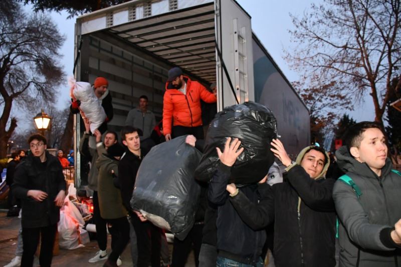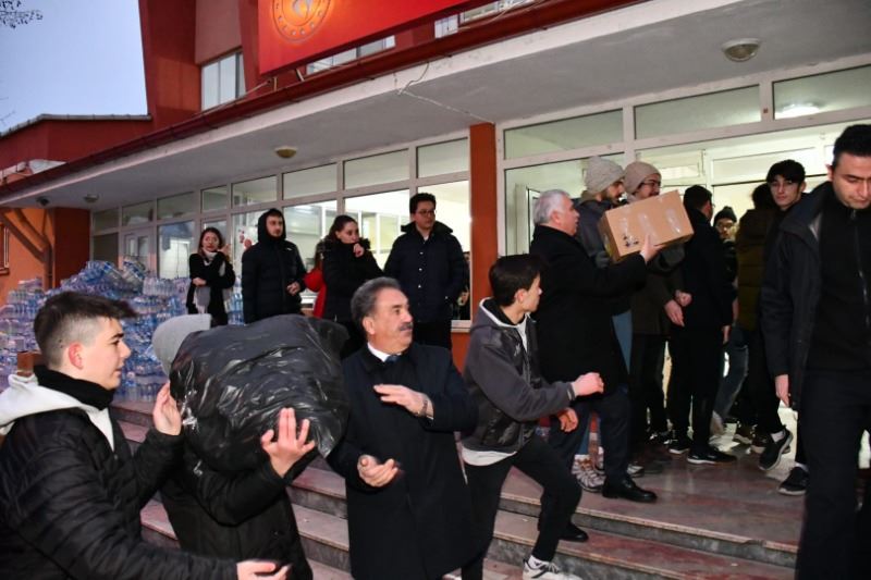 Yardım toplama alanını gezen Vali Yıldırım, yardım çalışmalarına destek olan vatandaşlara teşekkür etti. Vali Yıldırım ve Süleymanpaşa Kaymakamı Mustafa Güler, öğrencilerle birlikte içerisinde insani yardım malzemesi bulunan kolileri tırlara yükledi. Ziyaretleri sırasında bir konuşma yapan Vali Yıldırım; “Tüm kurum ve kuruluşlarımız ve vatandaşlarımızla deprem bölgesine her türlü insani yardım malzemesini gönderiyoruz. Destek olan tüm kurum ve kuruluşlarımıza ve alicenap Tekirdağ halkına çok teşekkür ediyorum.” dedi.