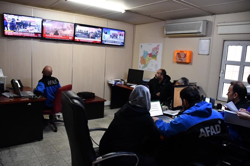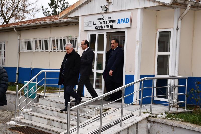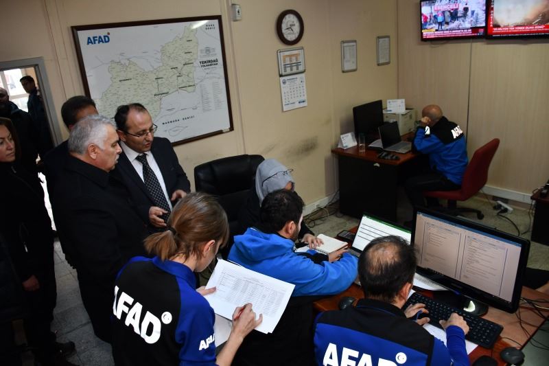 Tekirdağ Valisi Aziz Yıldırım, deprem bölgesine yönelik yapılan destek ve yardım çalışmalarının koordine edildiği İl Afet ve Acil Durum Yönetim Merkezi’ni ziyaret ederek incelemelerde bulundu.