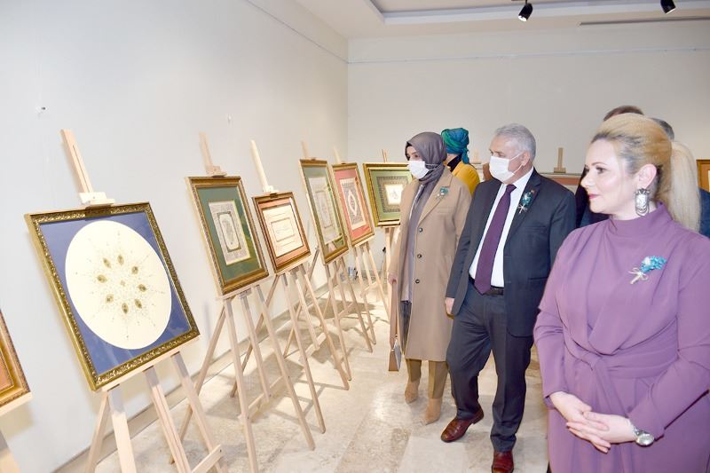 Vali Yıldırım’ın konuşmasının ardından kurdele kesilerek serginin açılışı gerçekleştirildi. Ardından Vali Yıldırım ve eşi Güllühan Yıldırım, sergiyi gezerek kursiyerlerin yaptığı tezhip sanatı eserlerini inceledi.