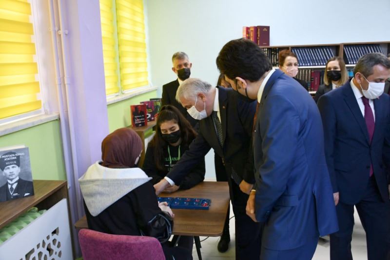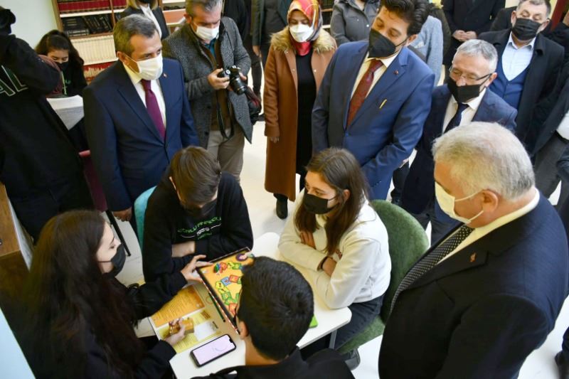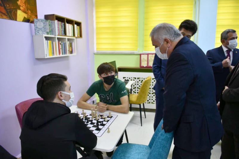 Ardından konuşan Vali Yıldırım; “Burası olmazsa çocuklar başka yerlerde, gençler de başka atölyelerde bu mecburiyeti sürdürmek zorunda kalacaklar ama dersten çıktıktan sonra ister ders arasında isterse öğlen arasında isterlerse derse erken geldikleri zaman okulumuzda öğle ya da sabahçı olmadığı için tam gün olduğu için daha fazla kalabilecekler. Öğrencilerimiz, sınıftaki kalan süreyi çok daha öğrenme odaklı olarak değerlendirebilme imkanına sahip olabilecekler. Hem gerek kaldığında başlarında öğretmende kalabilecek veya isteyen öğrencilerimiz isterse ders de çalışabilecekler. İsterse araştırma yapabilecek veya arkadaşlarıyla sosyal aktivite yapabilecekler. Herhangi bir istenmeyen davranışa alışmalarından ise öğrencilerimiz burada hem daha güzel vakit geçirebilecekler. Hem de kendilerine faydalı olan bir şeylerle uğraşacaklar. Kitapla ya da diğer donanımlarla internet ortamlarında erişilebilen kütüphanelerde var. Fakat kütüphanelerimizin kitaplarla zenginleşmesi doğru ama asıl benim düşüncem kütüphaneler, öğrenciyle orada araştırma yapanla çalışma yapanla zenginleşiyor.