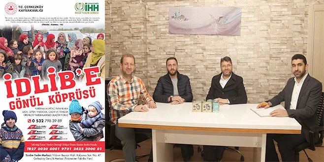İHH Çerkezköy Temsilciliği?nden yapılan açıklamada, ?İdlib bölgesinde yardıma muhtaç on binlerce Müslüman kardeşimiz gelecek yardımları bekliyor. Bizlerde bir nebze olsun ihtiyaçlarını gidermek için Çerkezköy?den gönül köprüsü kuruyoruz. Peygamber efendimiz bir hadisinde şöyle buyurmuştur: `Bir mümin, aç bir mümini doyurursa, Allah da o kimseyi cennet meyveleriyle doyuracaktır. Yine bir mümin, susuz kalan bir mümine bir şeyler içirip susuzluğunu giderirse, Allah kıyamette ona (misk ile mühürlenmiş lezzetli bir içecek olan) `Rahîk-ı Mahtûm`dan içirecektir. Yine bir mümin, elbiseye ihtiyacı olan bir mümini giydirirse, Allah da ona cennetin yemyeşil elbiselerinden giydirecektir. (Tirmizî, Kıyâme, 18)` Çerkezköy?de de yardımda bulunmak isteyen vatandaşlarımız, esnaflarımız, sanayicimiz, hayırseverlerimizi bu kampanyaya davet ediyoruz. Yardım TIR?ımız dolduğunda Çerkezköy?deki temsilcilik heyetimiz ile İdlib bölgesine giderek yardımlarımızı ihtiyaç sahiplerine dağıtacağız.? ifadelerine yer verildi.