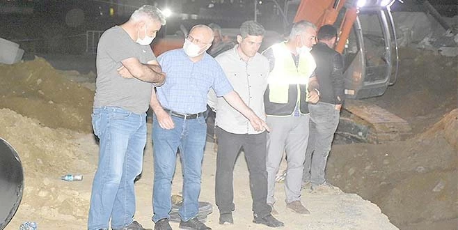Tekirdağ Su ve Kanalizasyon İdaresi (TESKİ) Genel Müdürlüğü ekipleri, ?Yeni Yapılan Şehir Hastanesinin Altından Geçen İçme Suyu İsale Hatlarının İrtibatı ve Deplase Çalışması? işi için yağmur altında 24 saat aralıksız çalıştı.