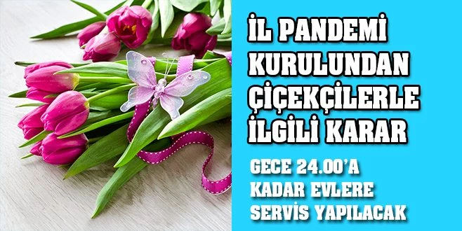Tekirdağ İl Pandemi Kurulu tarafından, çiçek satışı yapan iş yerlerinin sokağa çıkma kısıtlamasının uygulandığı, 12 Şubat Cuma günü 20.00-24.00 saatleri arasında evlere servis, 13-14 Şubat Cumartesi-Pazar günlerinde 10.00-17.00 saatleri arasında müşterilere iş yerinde ve 10.00-24.00 saatleri arasında evlere servis şeklinde hizmet sunması yönünde karar alındı.