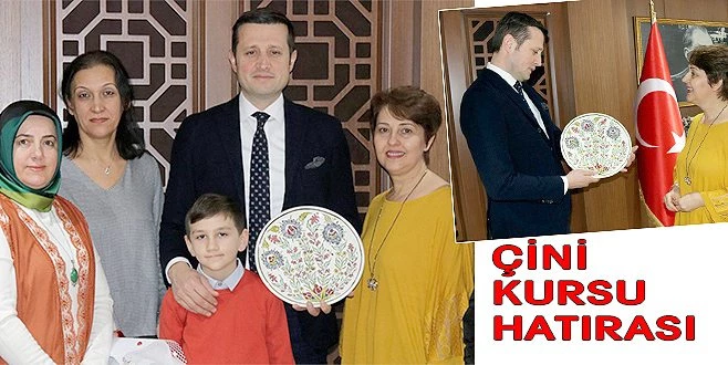Belediye`nin açtığı Çini Kursu, öğrencileri Çerkezköy Belediye Başkanı Vahap Akay`ı ziyaret ederek, `çini` işlemeli tabağı hediye etti...