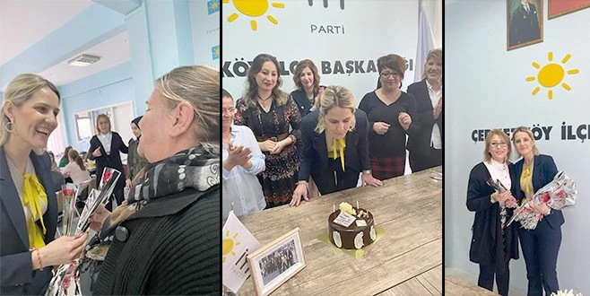 İYİ Parti Çerkezköy İlçe Teşkilatı, parti binasında 8 Mart Dünya Emekçi Kadınlar Günü`nü renkli bir atmosferde pasta kesip, karanfil dağıtarak kutladı.