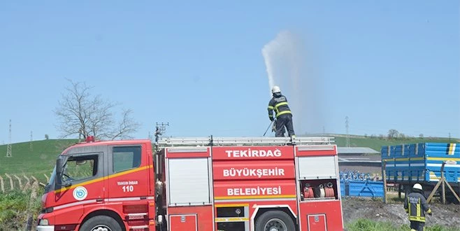 Malkara - Süleymanpaşa yolu üzeri Alaybey Mahallesi mevkisinde yoldan geçen bir araçtan sigara izmariti atılması sonucu yangın çıktığı öne sürüldü. Şarampolde otların tutuşmasıyla başlayan alan yangını, Kaan Atılgan?a ait tarım aletlerinin konulduğu bir araziye sıçradı. İhbar üzerine kısa sürede olay yerine gelen itfaiye ekipleri, yangını büyümeden söndürdü.