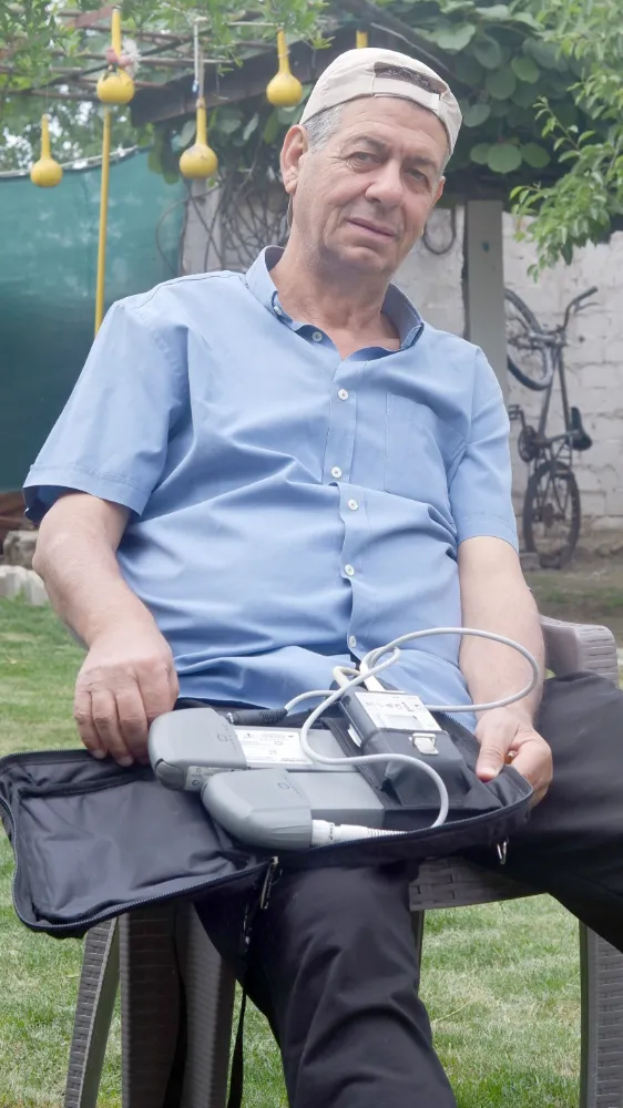Edirne’de yaşayan 60 yaşındaki Ahmet Sanrı, kalp krizinin ardından kalbinin fonksiyonlarını yerine getirememesi sonucu 4 yıldır çantasında taşıdığı yapay kalp cihazıyla hayatını sürdürüyor.