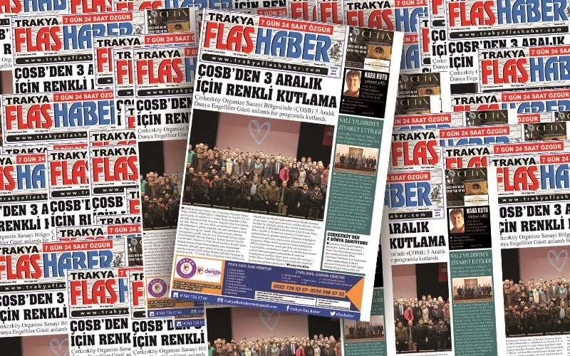 Trakya Flaş Haber Gazetesi’nin, 202 sayısı yine dopdolu! Haftanın manşetinde Çerkezköy Organize Sanayi Bölge (ÇOSB) Müdürlüğü’nün 3 Aralık Dünya Engelliler Günü nedeniyle düzenlediği etkinlik yer aldı. Detayları gazetenizde…