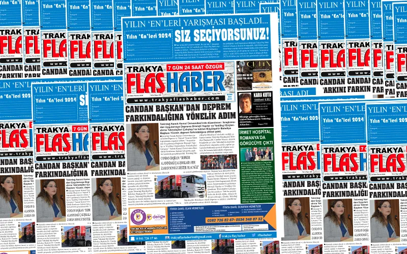 Trakya Flaş Haber Gazetesi’nin, 296 sayısı yine dopdolu! Bu hafta gazetemizin manşetinde, Tekirdağ Büyükşehir Belediye Başkanı Candan Yüceer’den deprem farkındalığı yönündeki konuşma ve çağrısı yer alıyor. Detaylar gazetenizde…