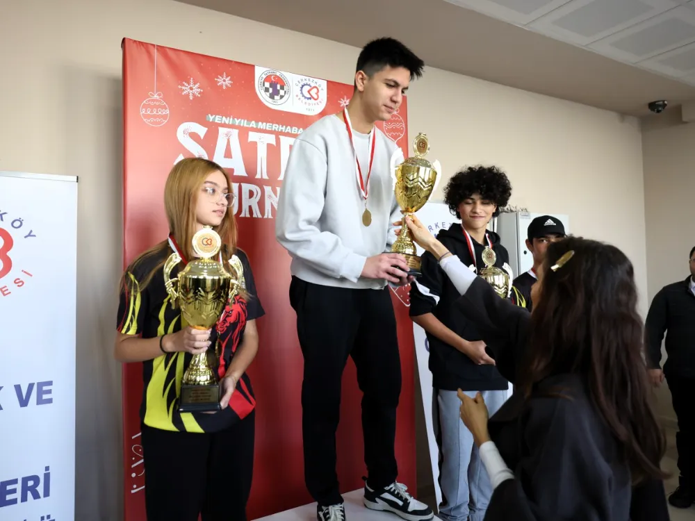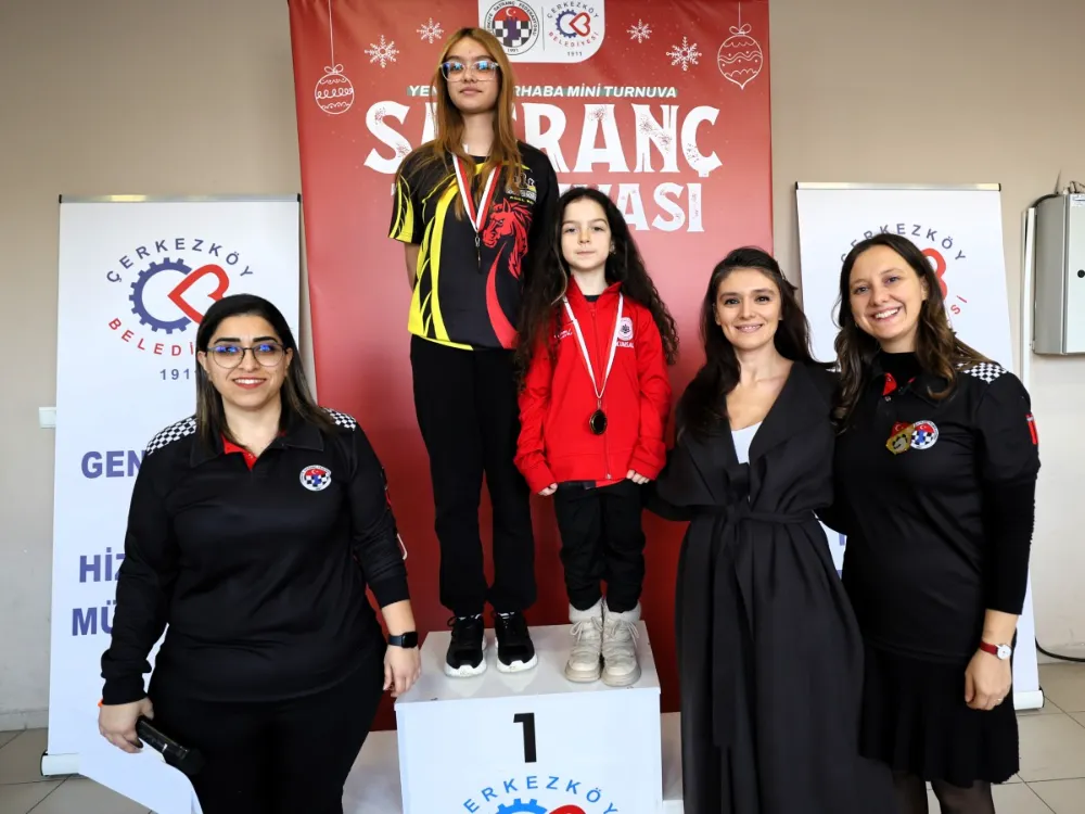 Çerkezköy Belediyesi Yeni Yıla Merhaba Satranç Turnuvası’nda dereceye giren sporculara ödülleri Çerkezköy Belediyesi Gençlik ve Spor Müdür Vekili Cansu Çutok ve Türkiye Satranç Federasyonu Çerkezköy İlçe Temsilcisi Ceylan Aslan tarafından verildi.