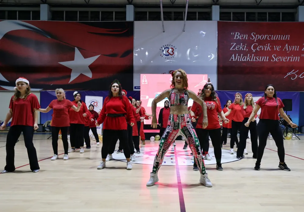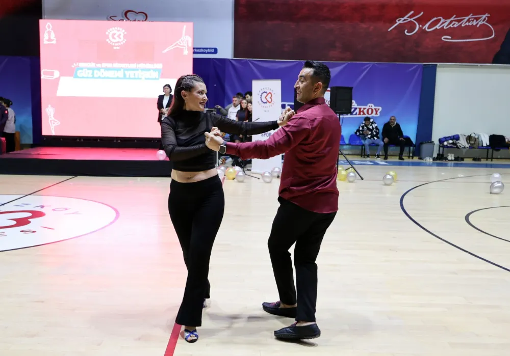 Yetişkin Spor Kursları Güz Dönemi kapsamında düzenlenen kapanış programı, Zumba, Halk Dansları, Latin Dansları ve Modern Danslar kursiyerlerimizin hazırladıkları gösteriler ile devam etti. Kursiyerlerin muhteşem gösterileri izleyiciler tarafından ayakta alkışlandı. Ünlü dans eğitmenleri Hasan ve Ayaz’ın muhteşem gösterisi ile sona eren programda tüm kursiyerlere katılım sertifikaları takdim edildi.