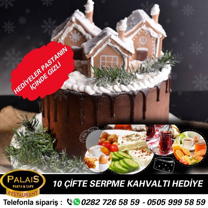 Palais Pasta ve Cafe Restaurant’tan bu yılbaşı pastasını alanlar hediye ile karşılaşabilir. 31 Aralık günü Palais Pasta ve Cafe Restaurant’tan yeni yıl pastalarını alan müşterilere pastanın içinden serpme kahvaltı hediyesi çıkabilir. Palais Pasta ve Cafe Restaurant sahibi Orhan Özer, “31 Aralık Cuma günü satışa sunacağımız yılbaşı yaş pastalarımızla müşterilerimize sürpriz yapmak istedik. Pastaların içinde iki kişilik serpme kahvaltı yazısını bulanan şanslı müşterilerimiz, çekilişsiz kurasız doğrudan restoranımızda, istedikleri zaman kahvaltılarını yapabilirler.”dedi.