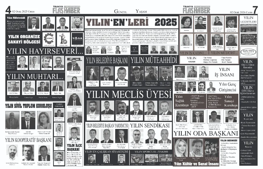 Trakya Flaş Haber Gazetesi tarafından geleneksel hale getirilen Yılın En’leri Yarışması bu yıl 4’üncü kez düzenlendi. Yoğun ilgi gören yarışmada aday oylaması sona erdi. 2025 yılında yaklaşık 30 kategoride ödül sahiplerini bulacak. Bu yıl yılın ‘en’leri 30 Ocak 2026 tarihli gazetemizde açıklanacak.