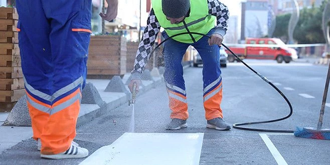 Kapaklı Belediye Başkanı Mustafa Çetin, ?Asfalt, kaldırım, peyzaj ve aydınlatma çalışmalarımızla kentimize yakışır modern bir görünüme kavuşturduğumuz Pınar Bulvarımızda ekiplerimiz sokağa çıkma yasağı ve güzel havayı fırsat bilerek yaya geçidi ve çizgi çalışması gerçekleştirdi. Trafik akışının güvenli ve düzenli bir şekilde sağlanması amacıyla yapılan çalışmalar kapsamında yaya geçidi çizgileri çift komponent boya ile boyanıyor. Boyası tamamlanan çizgilerin üstüne belirginleştirmek için cam tozu serpiliyor. Bu sayede çizgiler hem gece hem de gündüz dikkat çeken bir görünüme kavuşuyor. Yayaların ve sürücülerin güvenli sürüş yapmaları sağlanıyor.? dedi.