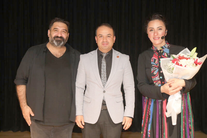 İzleyicileri tarihsel bir serüvene çıkaran duygu dolu oyun sonrasında Kapaklı Belediye Başkan Yardımcısı Çağlar Bütün tarafından Tiyatro Sanatçısı Nazlı Çığa ve Müzisyen Sinan Kutlucan’a çiçek takdim edildi.