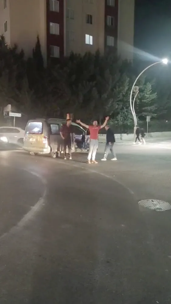 Tekirdağ Kapaklı ilçesinde 3 şahıs yol ortasında aracı durdurup roman havası oynadı.
