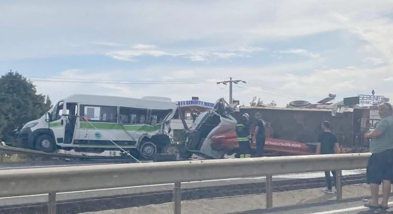 Tekirdağ’ın Marmaraereğlisi ilçesinde yolcu minibüsü ile vinçli kamyonun karıştığı kazada 3’ü ağır 12 kişi yaralandı.