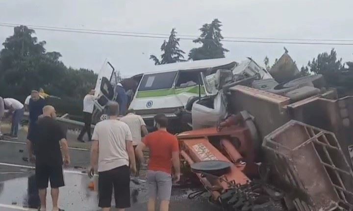 Kaza, Marmaraereğlisi ilçesi Dereağzı Mahallesi mevkiinde meydana geldi. Y.D.’nin hakimiyetindeki 06 FVR 54 plakalı vinçli kamyon, yolun kenarında yolcu almak için bekleyen E.S.’nin idaresindeki 59 M 2104 plakalı yolcu minibüsüne çarptı. Meydana gelen kazada minibüs ve kamyonda bulunan 12 kişi yaralandı. Haber verilmesi üzerine bölgeye çok sayıda itfaiye, polis, 112 Acil Sağlık ekipleri sevk edildi. İlk müdahalelerinin ardından yaralılar, Tekirdağ ve Çorlu ilçesindeki çeşitli hastanelere sevk edildi. Kazada 12 yaralının 3’ünün durumunun ağır olduğu öğrenildi. Kazayla ilgili başlatılan soruşturma sürüyor. Kaza sebebiyle Tekirdağ-İstanbul yolunda trafik akışında aksamalar yaşandı.