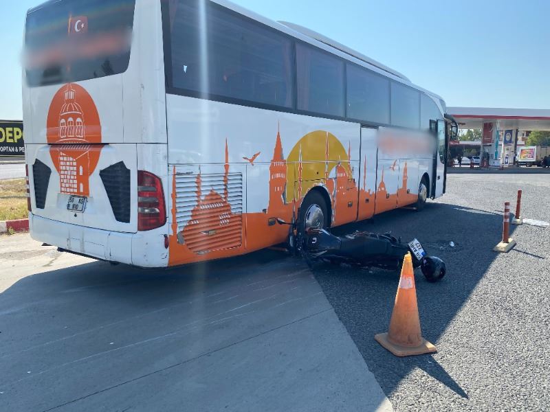 Tekirdağ’da çarpıştığı otobüsün altında kalan motosiklet sürücüsünün ayağının koptuğu kaza anı kameraya yansıdı.