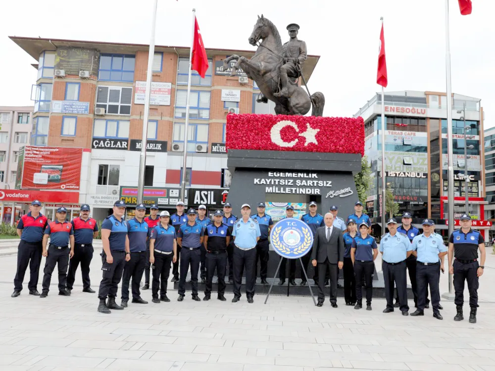 Türk Zabıta Teşkilatı’nın 197. Kuruluş Yıldönümü kutlama etkinliklerinde Çerkezköy Belediye Başkanı Vahap Akay, Zabıta Müdürü Kenan Erez ve beraberindeki Zabıta memurları Cumhuriyet Meydanı’ndaki Atatürk Anıtı'na çelenk koyup, saygı duruşunda bulundular ve ardından İstiklal Marşımızı okudular.