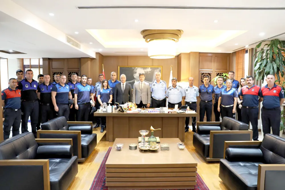 Atatürk Anıtı’ndaki programın ardından Çerkezköy Belediyesi Zabıta Müdürü Kenan Erez ve beraberindeki Zabıtalar, Çerkezköy Belediye Başkanı Vahap Akay’ı makamında ziyaret etti. Ziyarette konuşan Çerkezköy Belediyesi Zabıta Müdürü Kenan Erez, “Zabıta Teşkilatımızın kuruluşunun 197. yıl dönümünü kutluyoruz” dedi.