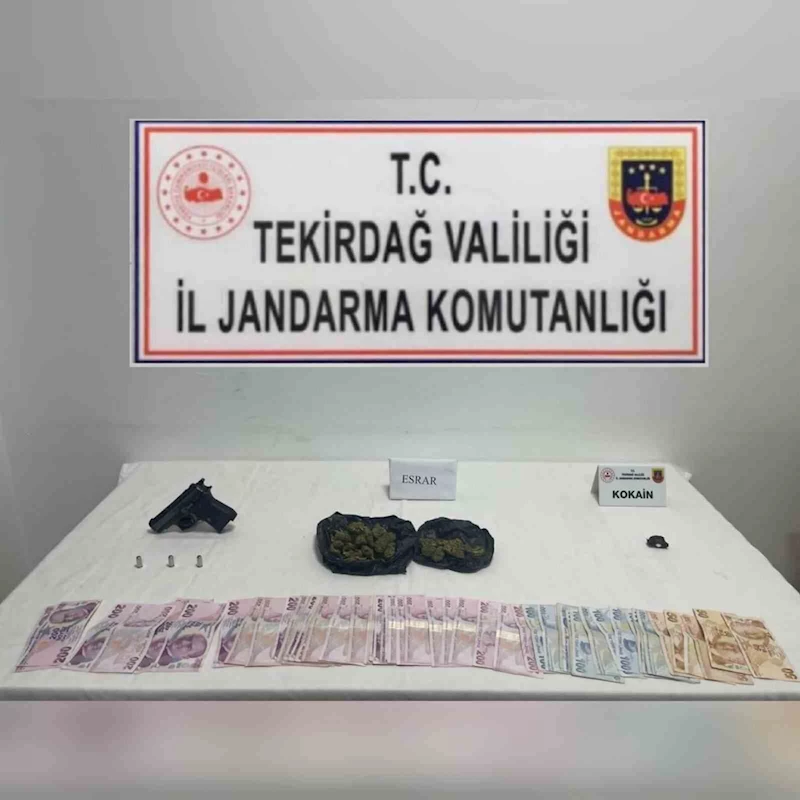 Tekirdağ’ın Çerkezköy ilçesinde bir evde yapılan aramada uyuşturucu madde ve kurusıkı silah ele geçirilirken, 1 şüpheli ise gözaltına alındı.