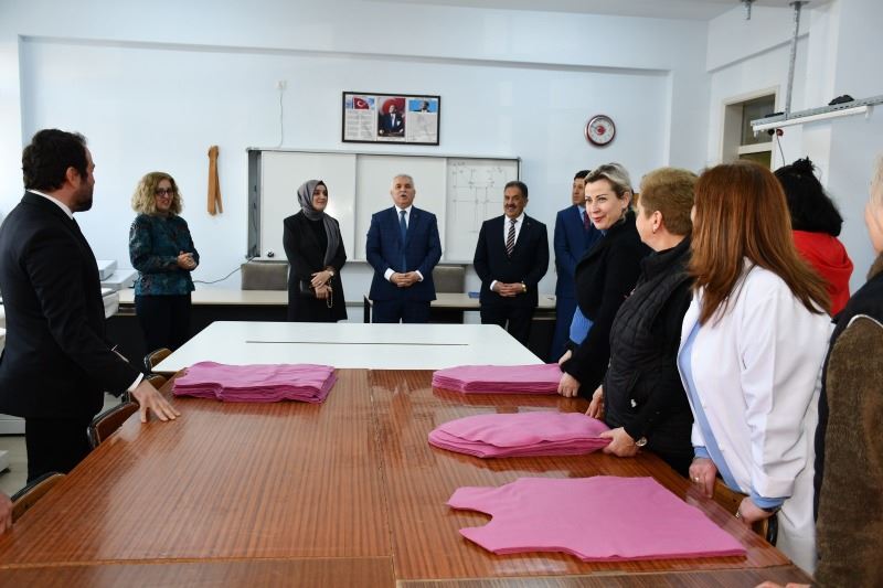 Kıyafet üreten öğretmen, öğrenci ve gönüllülere hitaben bir konuşma yapan Vali Yıldırım; “Çalışkanlığınız, fedakarlığınız, yüce gönüllüğünüz sebebiyle sizlere teşekkür ediyorum. Depremzede vatandaşlarımızın ekmek ihtiyacını karşıladınız. Sizleri tebrik ediyorum. Elinize sağlık. Hep birlikte depremin acılarını dindirecek vatandaşlarımızın yaralarını saracağız” dedi. Vali Yıldırım ve eşi Güllühan Yıldırım’a ziyaretleri sırasında Süleymanpaşa Kaymakamı Mustafa Güler eşlik etti.