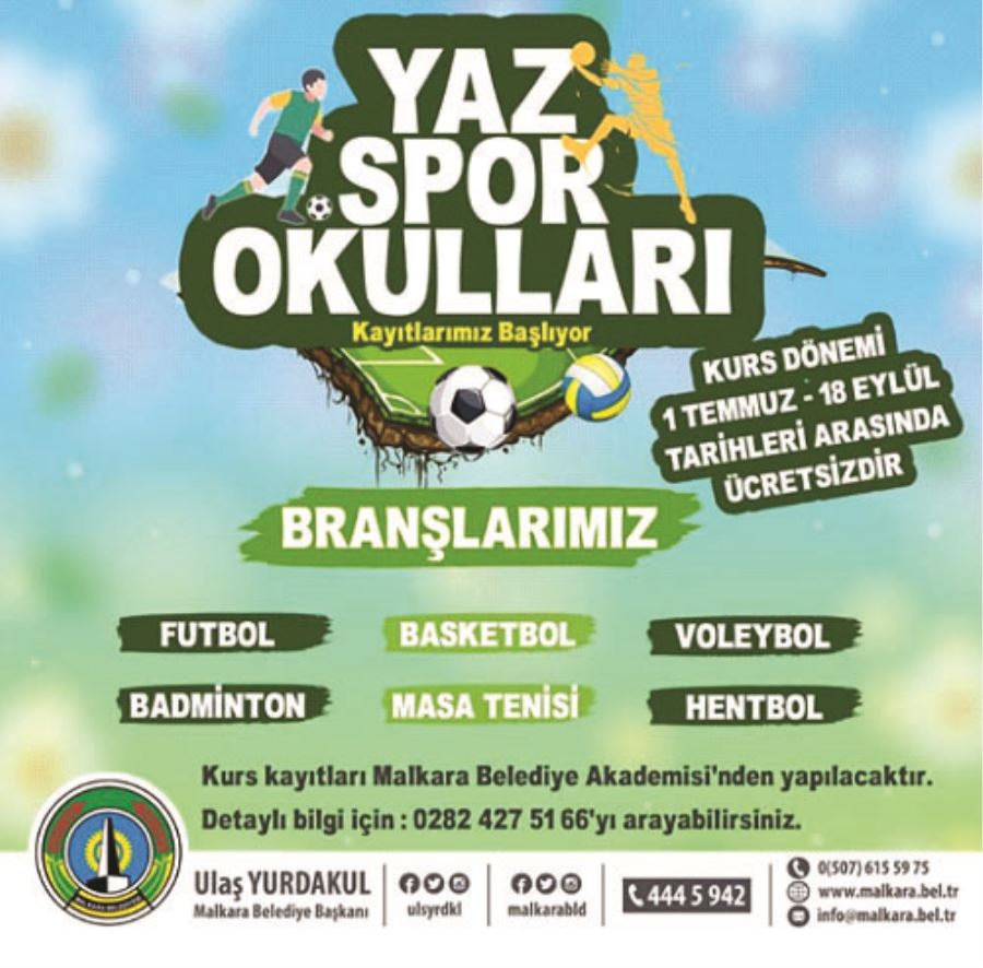 Civardaki tüm belediyeler yaz tatilinin başladığı şu günlerde birbirleriyle yarışırken bu tatlı rekabete Malkara Belediyesi de dahil oldu.J Futbol, basketbol, voleybol, hentbol, masa tenisi ve badminton alanında ücretsiz olarak gerçekleşecek kursların kayıtları Malkara Belediye Akademisi’nden yapılacak. Kurs tarihleri ise 1 Temmuz – 18 Eylül.