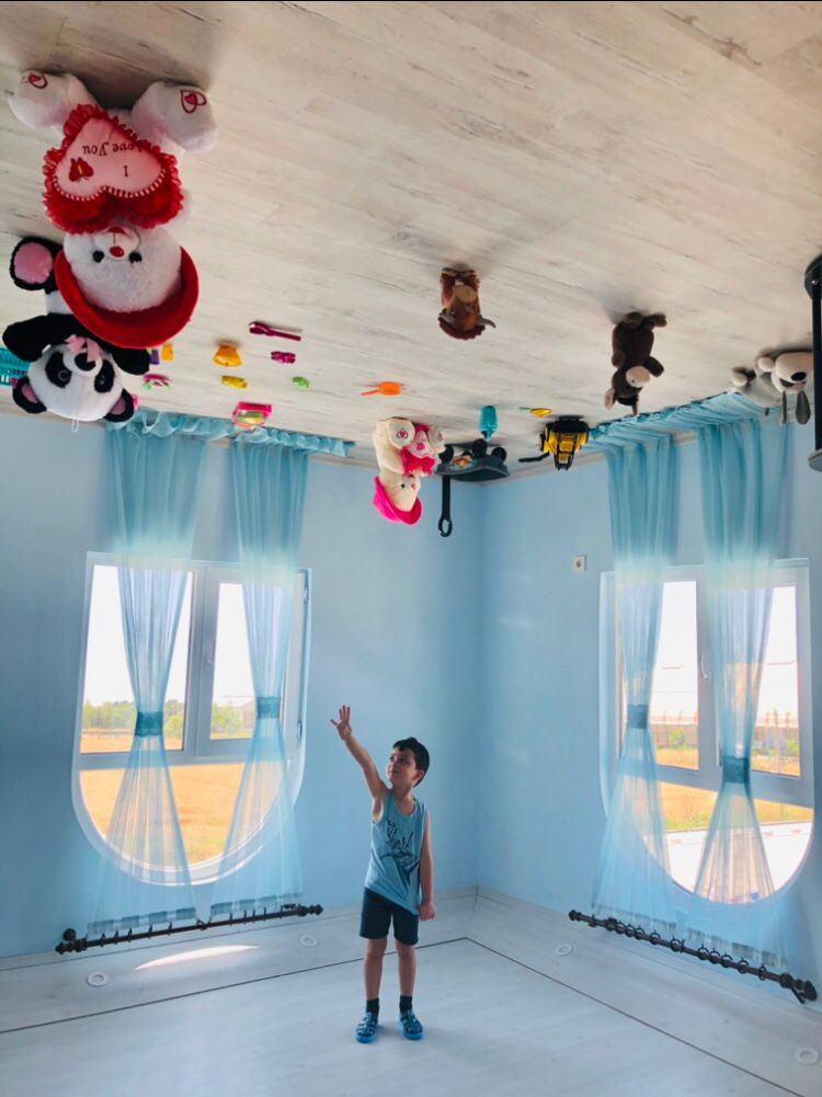 Hazır Çorlu’ya keyifli bir gün için gelmişken Morbahçem Lavanta Bahçesi’nden direkt Ters Ev’e geçerek gününüzü daha da neşeli bir hale getirebilirsiniz. :) Çorlu Piknik Garden ve Masal Park’ın hemen arkasında yer alan Ters Ev, iki katlı ve içindeki tüm eşyalar tahmin edeceğiniz üzere ters monte edilmiş. Ters yerleştirilmiş 2 katlı bir evden ve bahçesinde ters pozisyonda yer alan park etmiş bir otomobile kadar her detayın düşünüldüğü bu ilginç evde biraz fazla durunca başınız dönmeye başlıyor ama sanırım çocuklar için bu durum geçerli değil. Çünkü Ediz’i evden çıkarmak için epey dil döktük. :)
