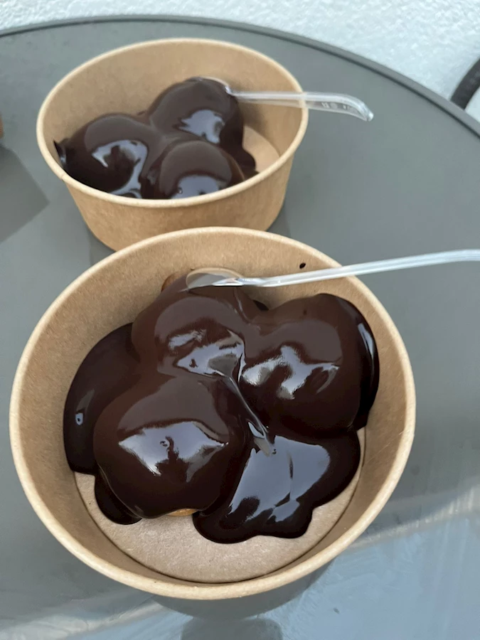 Ertesi akşam yemeğimizi otelde yedikten sonra tatlı için Sabriye Profiterol’e gittik. İnternette aradığınızda hemen karşınıza çıkan ve bir kadın girişimcinin hayata geçirdiği bu küçük ama sıcak mekanda hazırlanan profiterolleri yine açık ara bugüne kadar yediklerimin arasında en iyi olarak sıralayabilirim. Mekanda sadece profiterol seçeneği yok, gelmişken diğer alternatif tatlıları da deneyebilirsiniz.