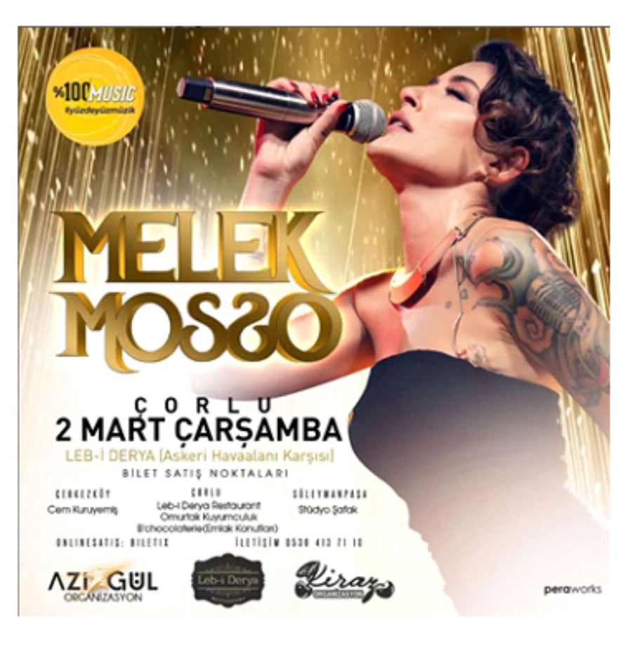 Kendisini izleyenlere müzik ziyafeti yaşatmayı vadeden Melek Mosso 2 Mart Çarşamba akşamı Çorlu’da Leb-i Derya sahnesinde!