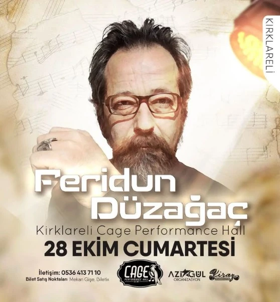 F. D., Boş Ders, Beni Bırakma, Düşler Sokağı ve Alev Alev şarkılarıyla bir döneme damga vuran ve bugün bile hala severek dinlenen başarılı sanatçı Feridun Düzağaç bu kez Kırklareli halkıyla buluşuyor.
