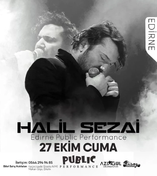 ‘’İsyan’’ şarkısıyla büyük bir çıkış yakalayan ve sonrasında seslendirdiği romantik şarkılarla hatırı sayılır bir dinleyici kitlesine sahip olan Halil Sezai, dillere pelesenk olmuş şarkılarını bu kez Edirneliler için söylüyor.