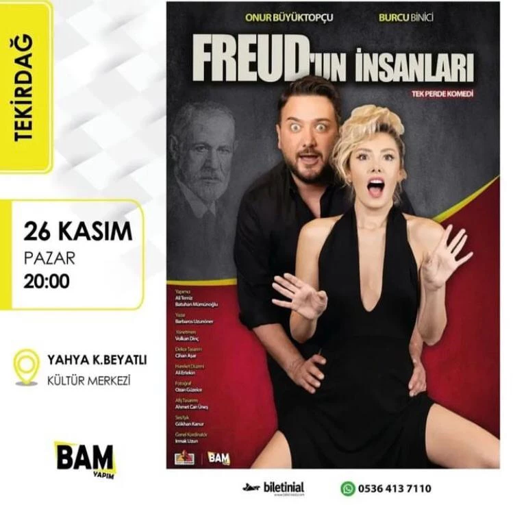 Psikolojinin kurucusu olarak bilinen Nörolog Freud’un öğretisini eğlenceli bir yöntemle sahneye taşıyan ‘Freud’un İnsanları, 26 Kasım Pazar günü saat 20:00’de Tekirdağ Yahya Kemal Beyatlı Kültür Merkezi’nde tiyatro severlerle buluşuyor.