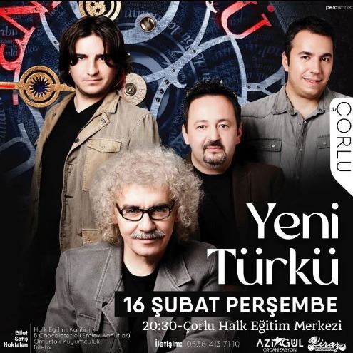Yıllardır aynı tatla dinlediğimiz ve birbirinden nostaljik şarkıları dillere pelesenk olan Yeni Türkü grubu, Çorlulu müzik severlerle buluşuyor.